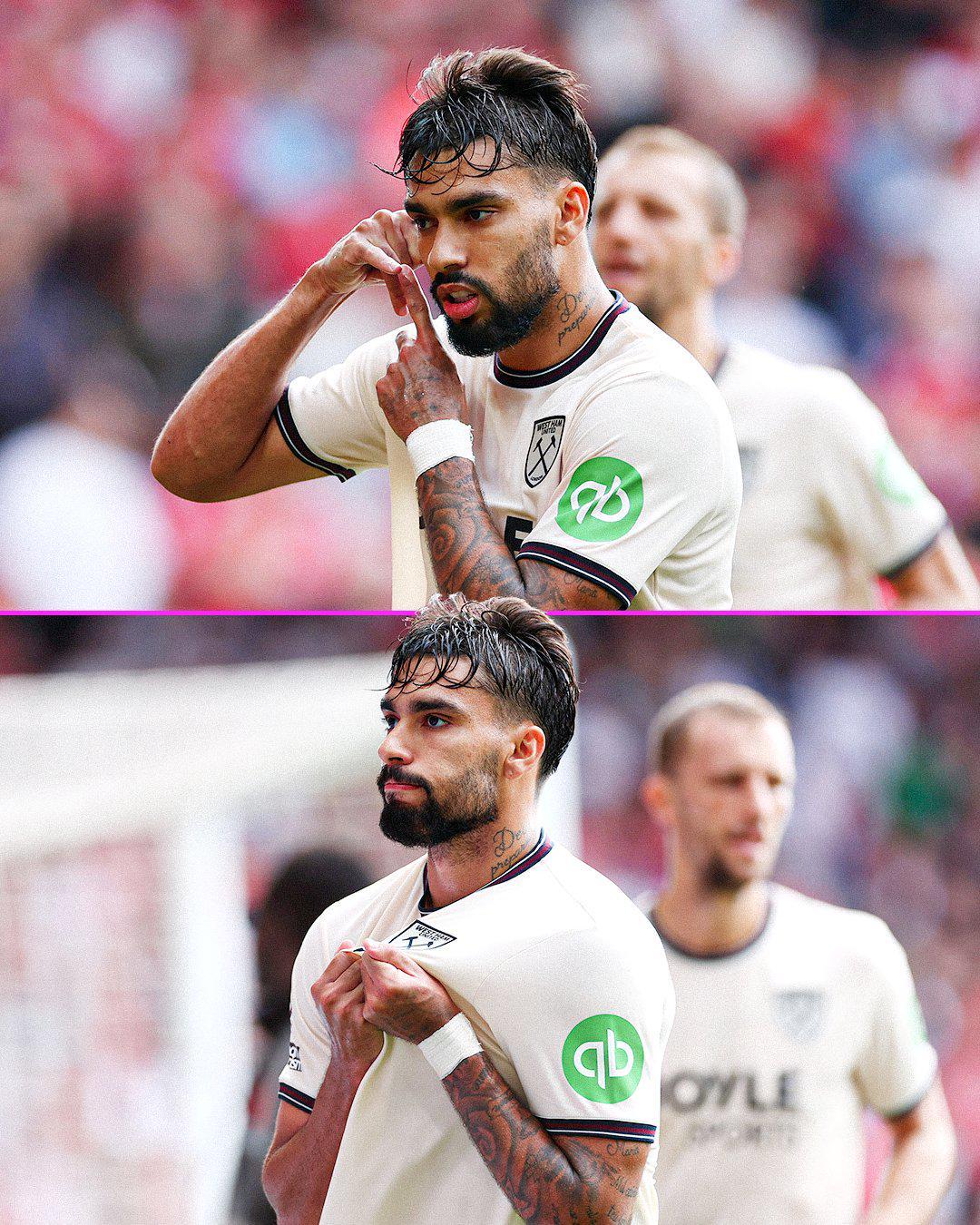 值得一提的是,在比赛第88分钟罚入一个点球后,西汉姆中场帕奎塔上演了戏剧性的庆祝动作,他做出了接电话的动作,随后又假装将电话扔掉,接着又亲吻了球衣胸前的队徽。